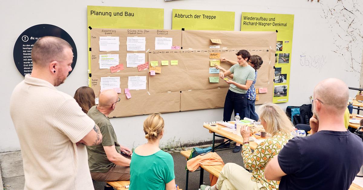 Abgerundet wurde die Sitzung mit einer kreativen Schreibübung: In einfachen Worten beschrieben die Teilnehmenden den Matthäikirchhof als „bunten Hund“, als Ort „ohne Schlüssel“, der für alle offen ist – und als „viel – vielfältiger – Matthäikirchhof“. Diese Slogans sollen später helfen, die Vision des Projekts einer breiten Öffentlichkeit zu vermitteln.