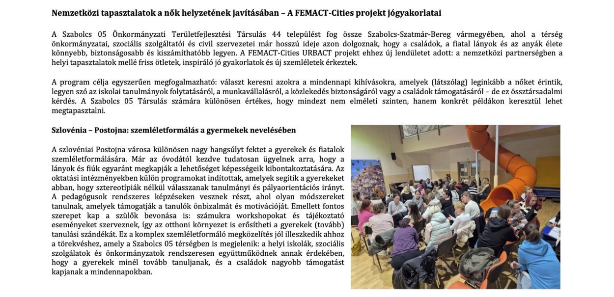 Web: https://urbact.eu/networks/femact-cities, https://www.linkedin.com/company/femact-cities/