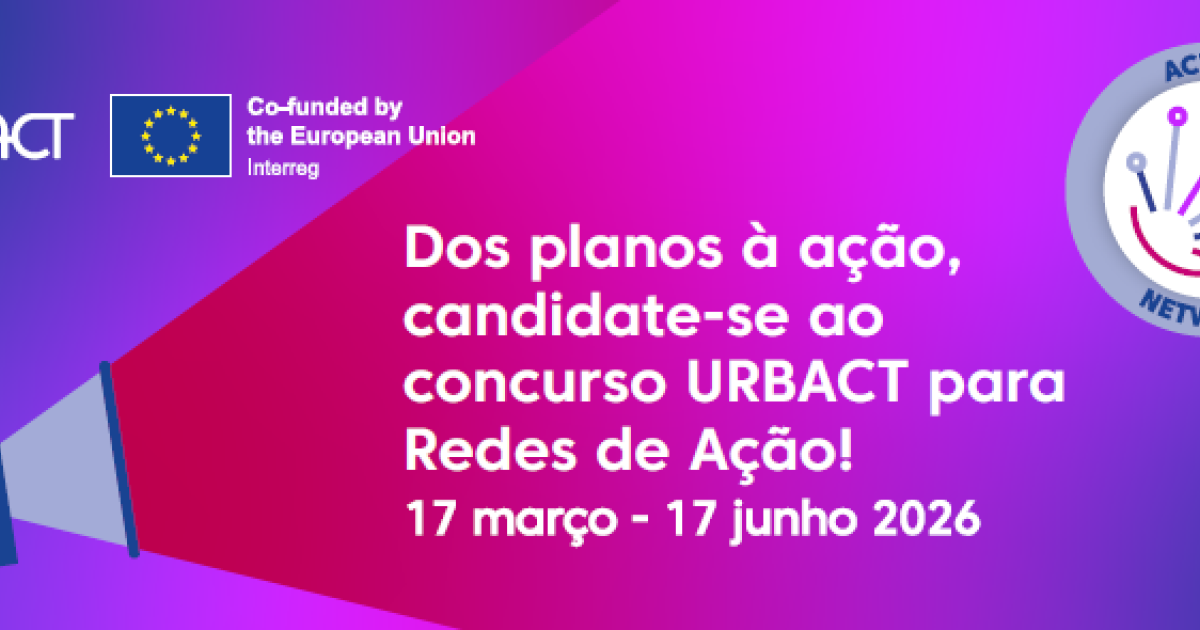 O concurso para as Redes está aberto, 17 de março até 17 de junho de 2026: urbact.eu/get.involved