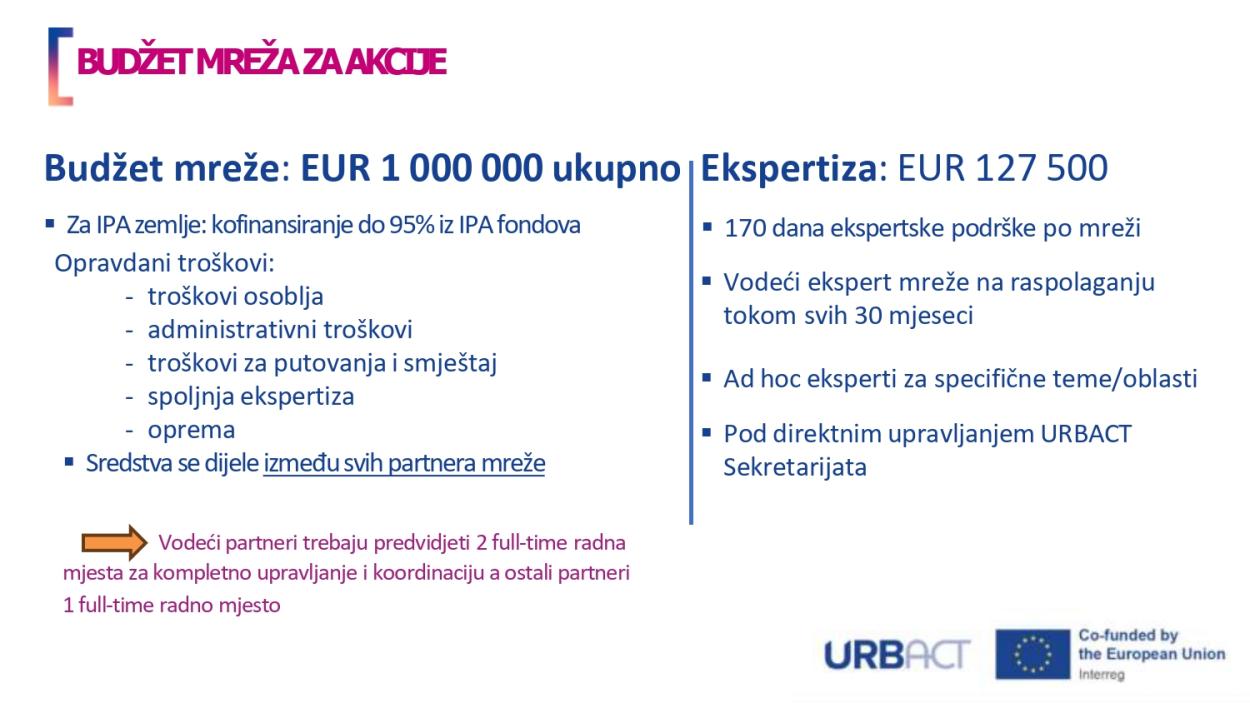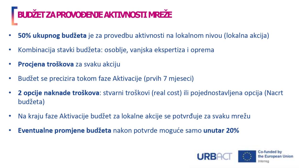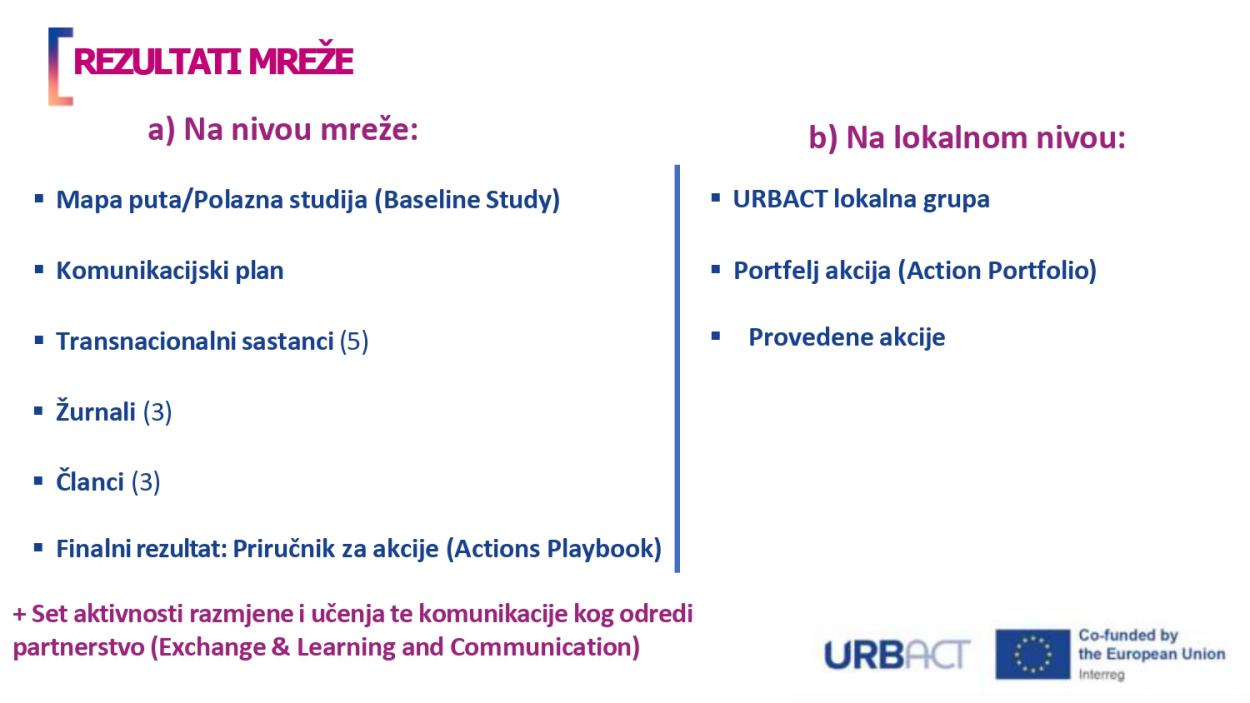 - administrativna i savjetodavna (URBACT Sekretarijat, NUP)