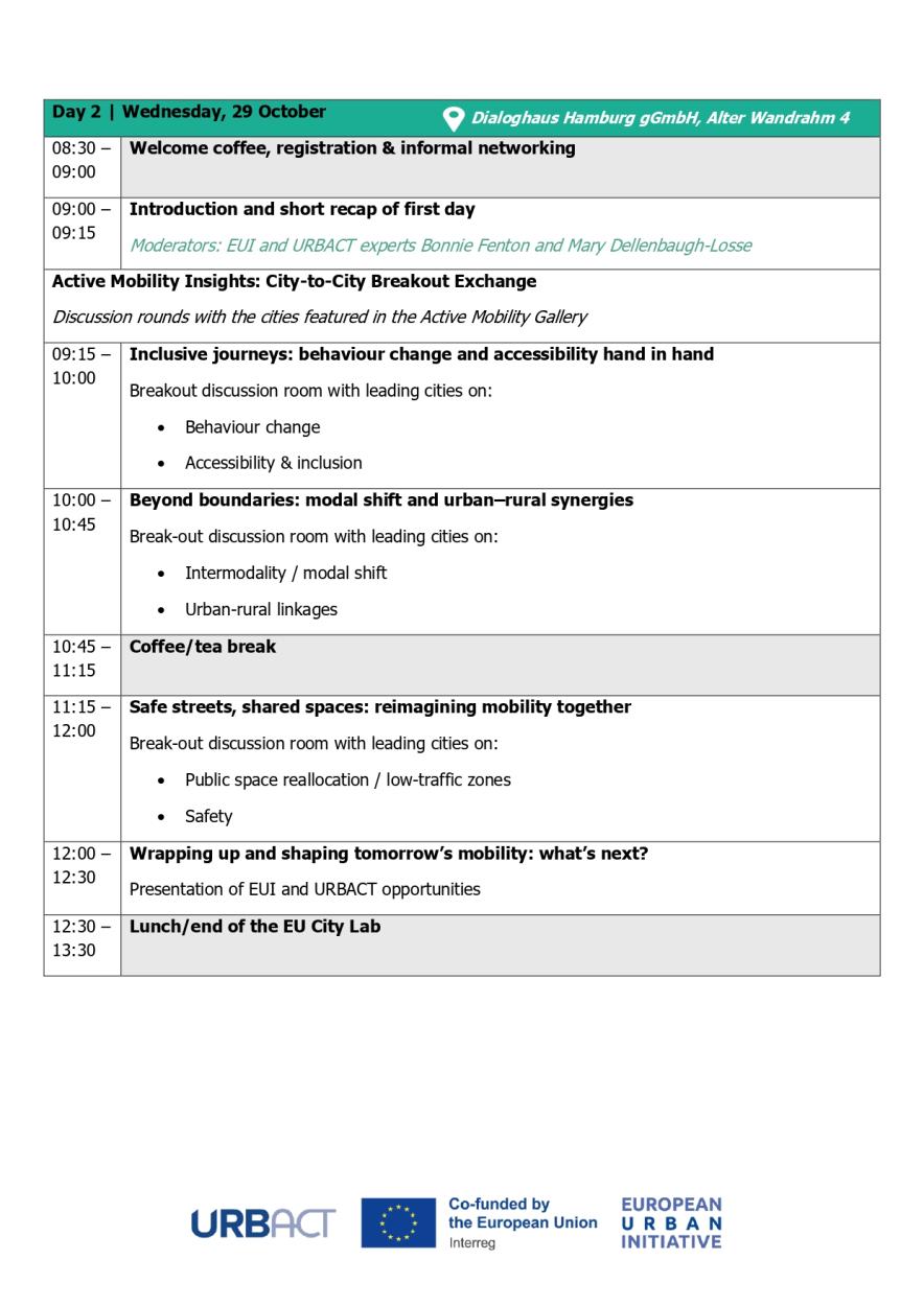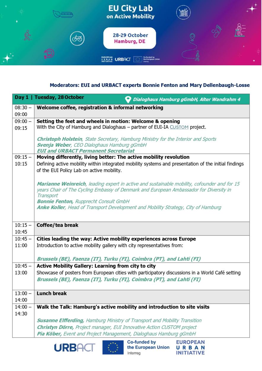 EU City Lab o aktivnoj mobilnosti je događaj za razmjenu znanja koji zajednički organizuju URBACT i Evropska urbana inicijativa (EUI), uz podršku grada domaćina Hamburga (Njemačka). Održava se od 28. do 29. oktobra 2025. godine.