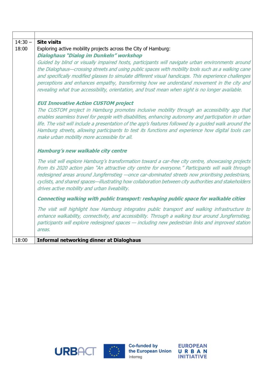 - saznate kako grad Hamburg primjenjuje principe aktivne mobilnosti u praksi, uključujući posjete gradskim lokacijama