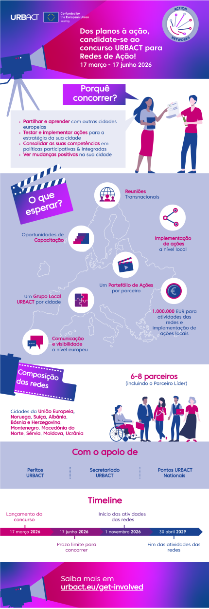 Conheça os pormenores do concurso na infografia abaixo e candidate-se! Todas as informações sobre o concurso estão disponíveis em urbact.eu/get-involved