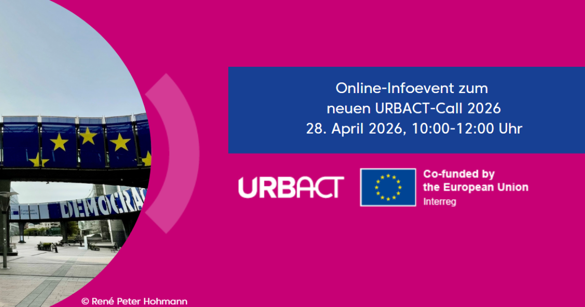 Alle wichtigen Informationen zu Fördervoraussetzungen, dem verfügbaren Budget, der Partnersuche und zum Bewerbungsverfahren präsentiert die Kontaktstelle für die Europäische Stadtinitiative und URBACT am 28. April 2026 von 10:00 bis 12:00 Uhr in einer Online-Infoveranstaltung. Die Veranstaltung bietet einen kompakten Überblick und dient als idealer Einstieg für Kommunen, die sich frühzeitig auf eine erfolgreiche Antragstellung vorbereiten möchten.