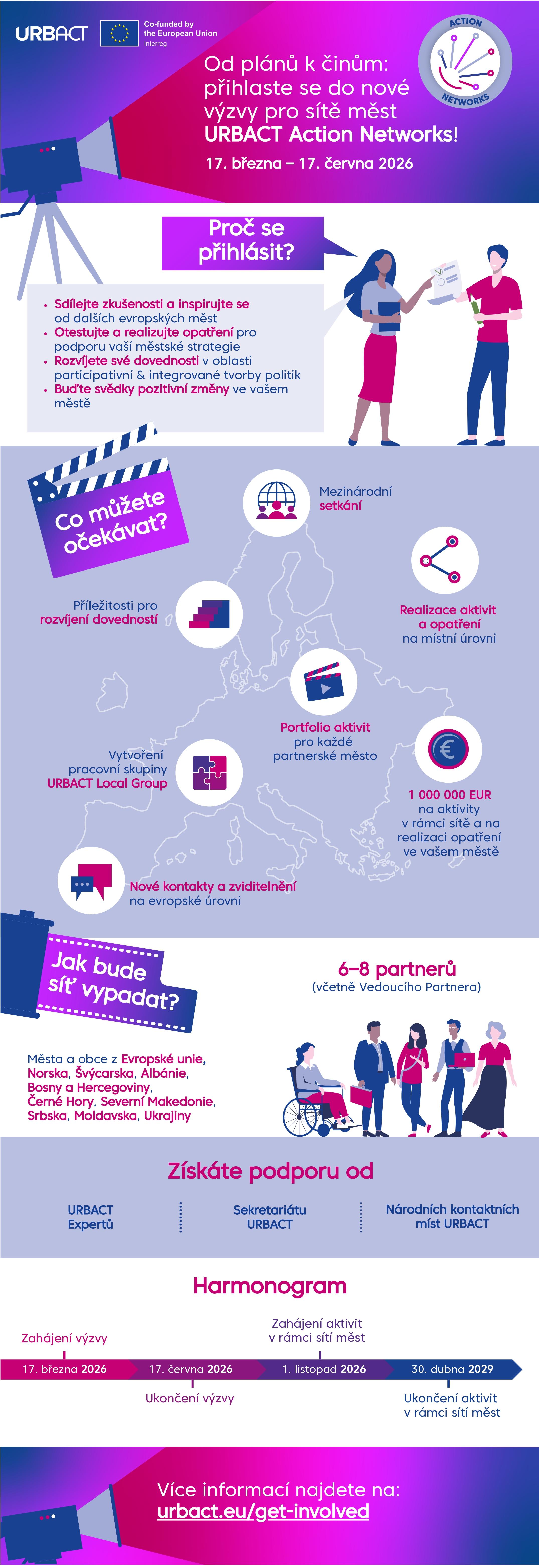 Nová URBACT výzva pro sítě měst Action Networks umožňuje městům realizovat své strategické záměry prostřednictvím konkrétních opatření. Do výzvy se mohou zapojit města a obce z České repubiky bez ohledu na velikost a z dalších 26 členských států Evropské unie a partnerských států (Norsko, Švýcarsko, Albánie, Bosna a Hercegovina, Černá Hora, Severní Makedonie a Srbsko, Moldavsko a Ukrajina).
