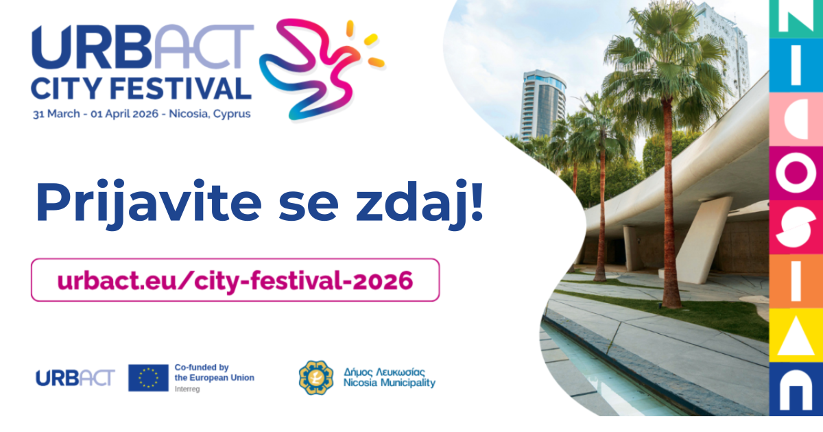 URBACT festival mest 2026 bo potekal med 31. marcem in 1. aprilom v Nikoziji na Cipru. Na tem osrednjem URBACT dogodku se bo zbralo 500 navdušencev nad mesti iz vse Evrope, ki se bodo navdihovali z 273 lokalnimi ukrepi URBACT mest, raziskovali ključne urbane teme ter gradili mreže za nov URBACT razpis za prenosne mreže. Prijave so zdaj odprte. Prijavite se čim prej, da si zagotovite svoje mesto.