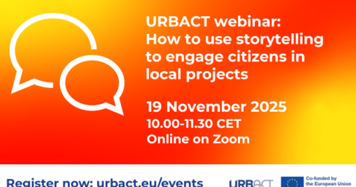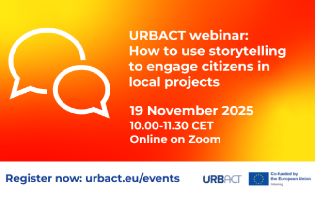 Participe no webinar do URBACT, no dia 19 de novembro, das 09:00h às 10:30h, hora de Lisboa, e descubra como a técnica de contar histórias pode ser utilizada como ferramenta para impulsionar a mudança a nível local!