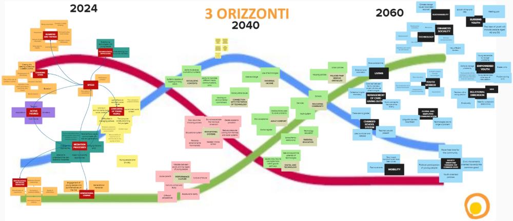 Perugia (IT) on the other hand, started by creating a vision on the interplay of the city, youth and technology, applying a ‘Three Horizons Future Lab’ method. The local team first analysed the challenges youth face in 2024 and then formulated the vision of how these challenges would have been addressed in 2060. The next step was to connect these two-time horizons by defining the development pathway towards the envisioned future expressing the needed changes for positive development over the next decade. The Lab delivered a clear structure for the transformative changes, and Perugia moved to developing the identified actions and testing them on the ground. A highlight of their work were the AI training sessions and events. The local team cooperated with young people originating from a rock festival who used digital and AI tools for the creation of videos and music. Within their AI events, more than 100 young people took part showcasing the demand for creative digital opportunities and the abilities youth gained throughout the training.