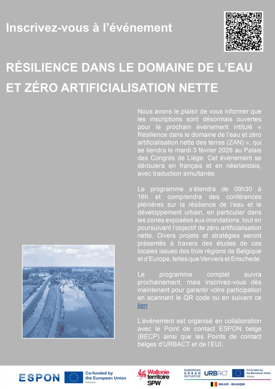 L'événement est organisé en collaboration avec le point de contact belge ESPON (BECP) et les points de contact belges pour URBACT et EUI.
