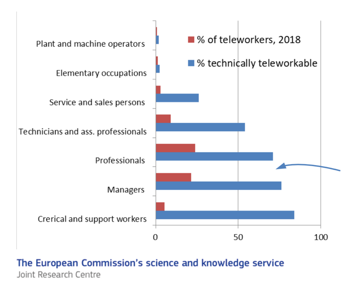 [2] Milasi, S., Hurley, J., Bisello, M., Gonzales-Vazquez, I., and Fernandez-Macias, E., Who can telework today? The teleworkability of occupations in the EU, European Commission, 2020, JRC121426.